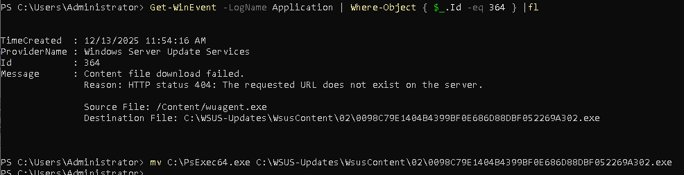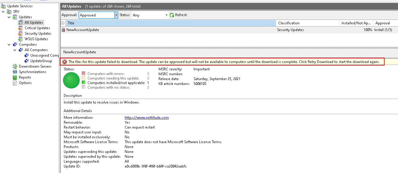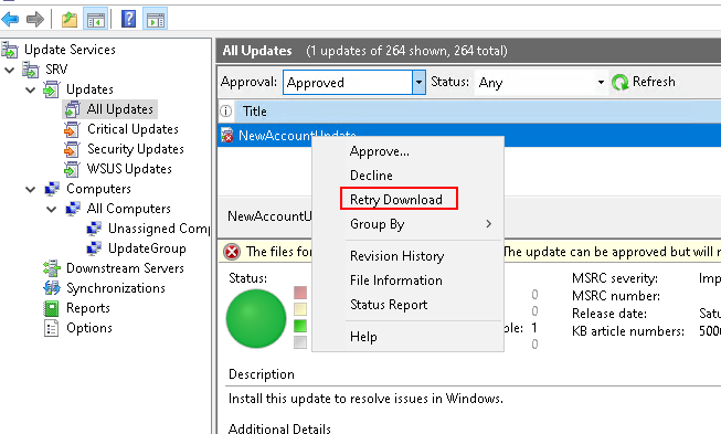 If you check out an update in the WSUS console youโll see that the update files (PsExec) fail to download.